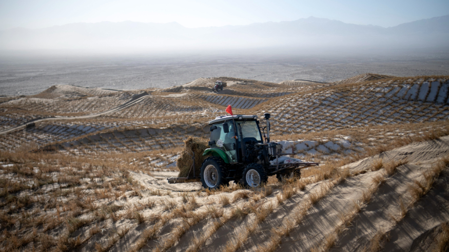甘肃阿克塞:雪后忙治沙
