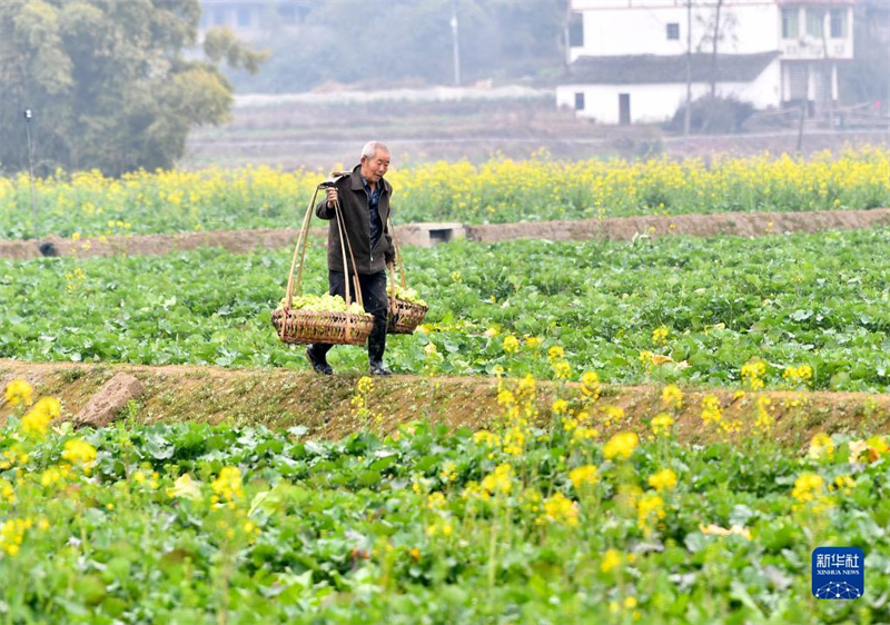 2月9日,四川省广安市广安区花桥镇竹林村的农民转运青菜头。