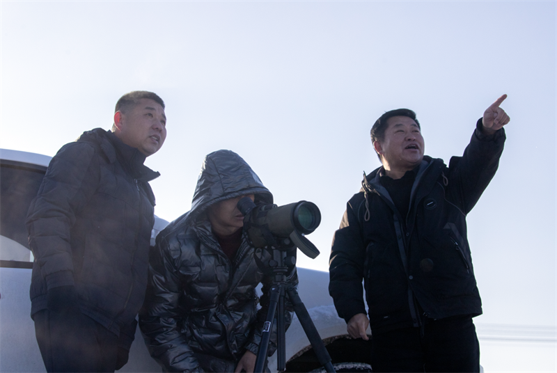 阿尔山市林业和草原服务中心工作人员正在监测黄羊动态