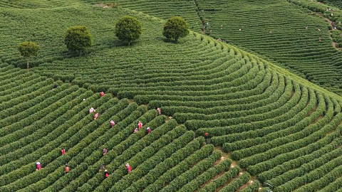 浙江安吉:万亩茶园 采摘正酣