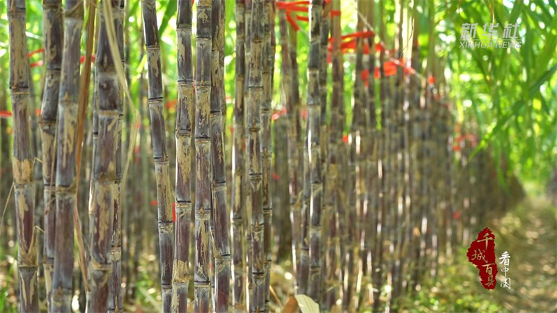 农户们穿梭其间,削叶、砍蔗