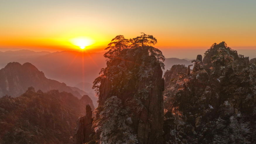 安徽黄山:雪霁日出映奇峰